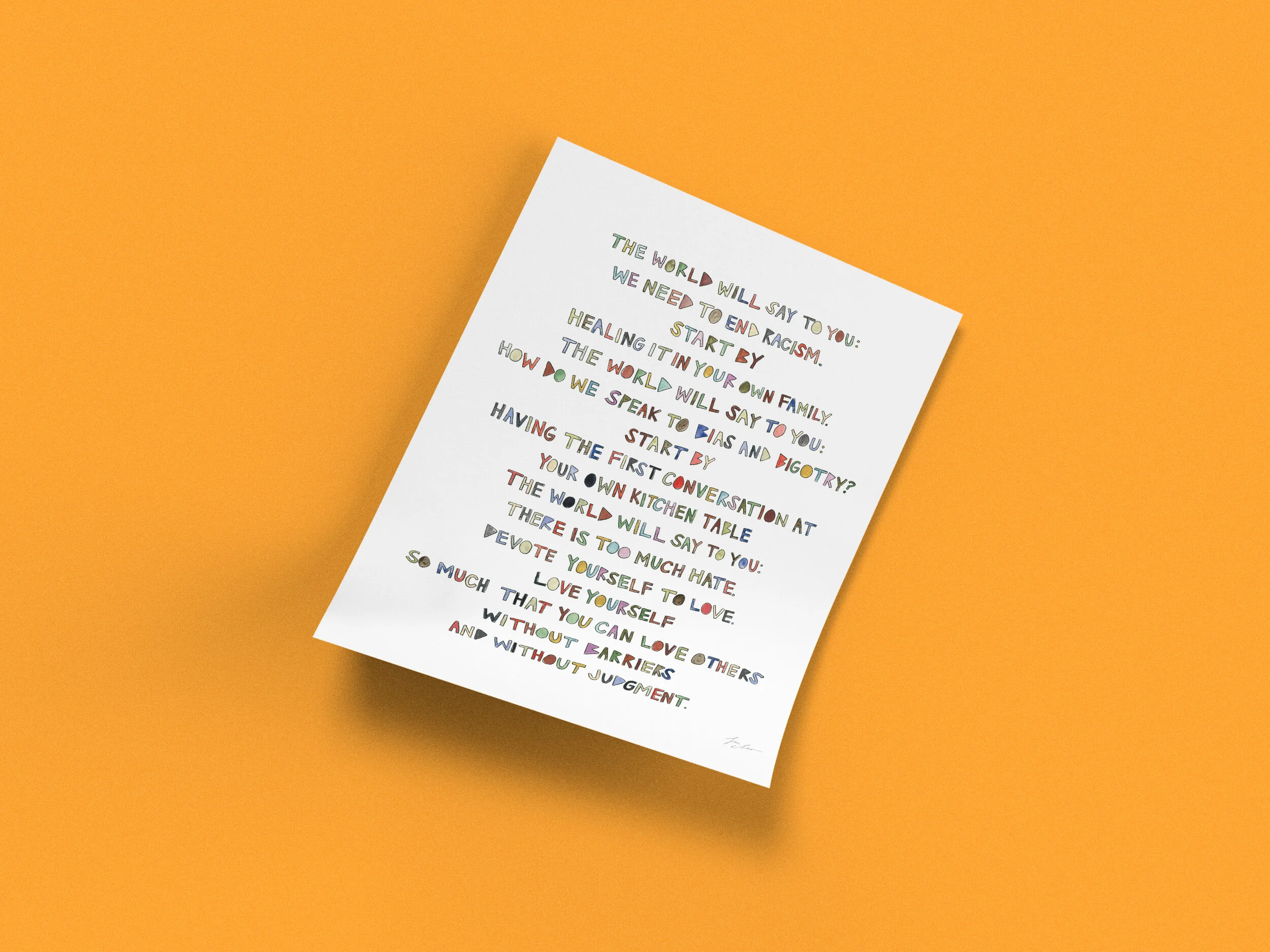 For her launch party at The New Museum, we digitised her painted poem into printed adhesive vinyl letters on the walls for her Heart Talk book.